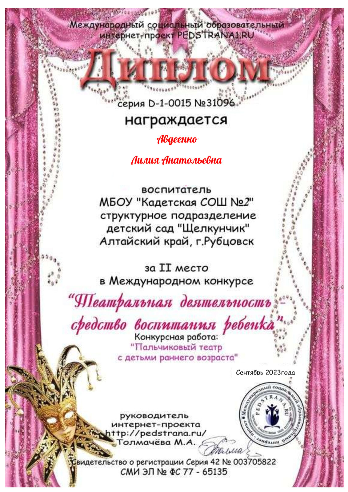 Эл. почта dsadv35_shelkunchik@mail.ru